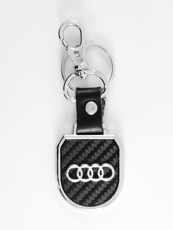 LLAVERO AUDI ESCUDO HERRAJE SENCILLO FIBRA NEGRA
